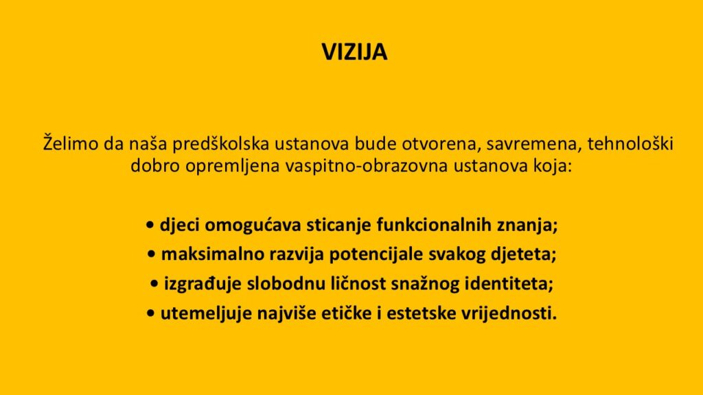 ,,Zvjezdica” je prerasla u pravi mali univerzum. Univerzum koji prima svako dijete kao najvrjedniji dar koji ga posmatra kao najotvorenije biće na svijetu, prepuno genijalnosti. Univerzum koji je svjestan svoje odgovornosti i uloge koje igra na početku životnog puta djeteta.